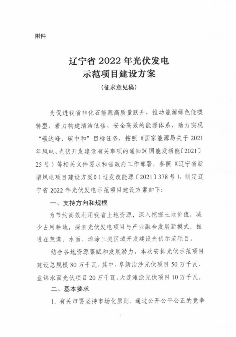 結(jié)合各地資源稟賦和發(fā)展?jié)摿?,本次安排光伏示范?xiàng)目建設(shè)總規(guī)模80萬(wàn)千瓦,其中,阜新治沙光伏項(xiàng)目50萬(wàn)千瓦、盤錦水面光伏項(xiàng)目20萬(wàn)千瓦、大連灘涂光伏項(xiàng)目10萬(wàn)千瓦。