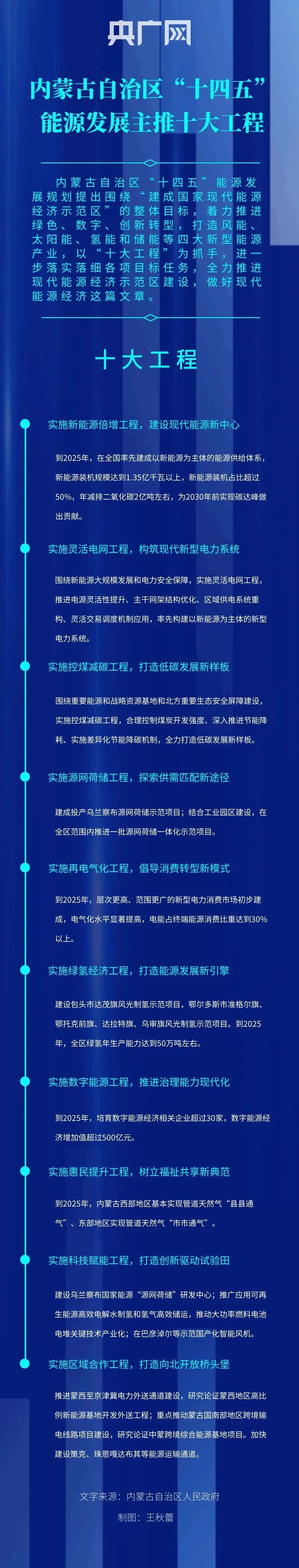 “十四五”時(shí)期,內(nèi)蒙古將以建設(shè)國(guó)家現(xiàn)代能源經(jīng)濟(jì)示范區(qū)為總體目標(biāo),推進(jìn)能源和戰(zhàn)略資源基地優(yōu)化升級(jí)。具體工作中,將依托能源基地建設(shè),以資源和市場(chǎng)換產(chǎn)業(yè),開(kāi)展新型能源產(chǎn)業(yè)關(guān)鍵裝備及其零部件制造,打造風(fēng)能、太陽(yáng)能、氫能、儲(chǔ)能四大新型能源產(chǎn)業(yè),以“十大工程”為抓手,進(jìn)一步落實(shí)落細(xì)各項(xiàng)目標(biāo)任務(wù),全力推進(jìn)現(xiàn)代能源經(jīng)濟(jì)示范區(qū)建設(shè),做好現(xiàn)代能源經(jīng)濟(jì)這篇文章。