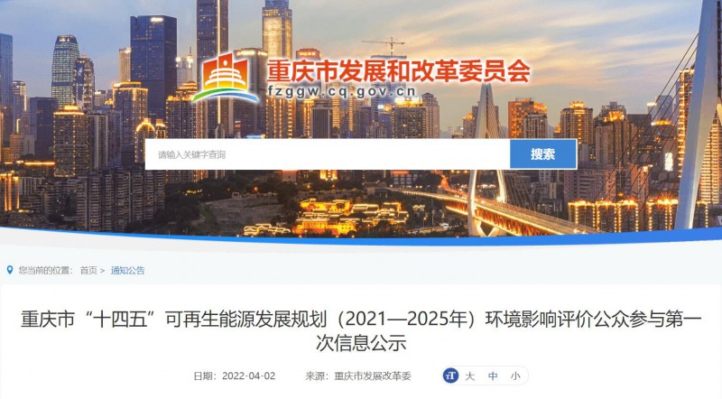 原標題:重慶市“十四五”可再生能源發(fā)展規(guī)劃(2021—2025年)環(huán)境影響評價公眾參與第一次信息公示