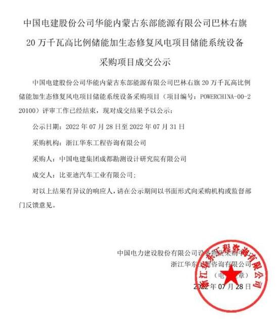 公告顯示,比亞迪汽車工業(yè)有限公司成功中標(biāo)該項(xiàng)目。