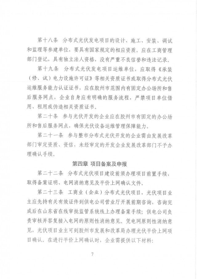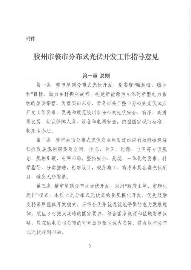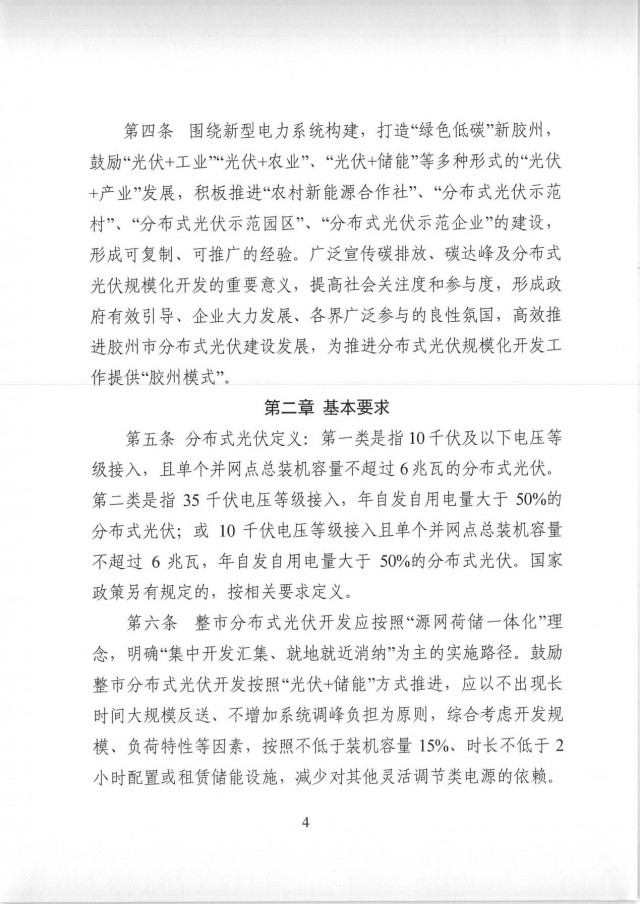 近日,山東膠州市發(fā)改委發(fā)布了《膠州市整市分布式光伏開發(fā)工作指導(dǎo)意見》。文件要求,整市分布式光伏開發(fā)應(yīng)按照“源網(wǎng)荷儲一體化”理念,明確“集中開發(fā)匯集、就地就近消納”為主的實施路徑。鼓勵整市分布式光伏開發(fā)按照“光伏+儲能”方式推進,應(yīng)以不出現(xiàn)長時間大規(guī)模反送、不增加系統(tǒng)調(diào)峰負擔為原則,綜合考慮開發(fā)規(guī)模、負荷特性等因素,按照不低于裝機容量15%、時長不低于2小時配置或租賃儲能設(shè)施,減少對其他靈活調(diào)節(jié)類電源的依賴。