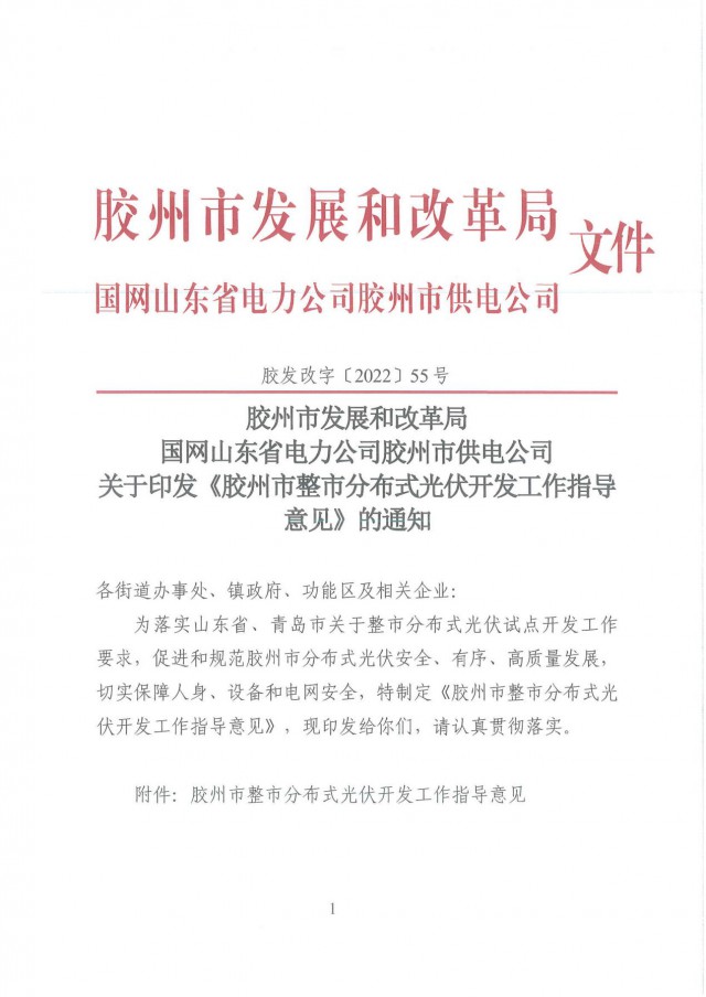 同時圍繞新型電力系統(tǒng)構(gòu)建,打造“綠色低碳”新膠州,鼓勵“光伏+工業(yè)”“光伏+農(nóng)業(yè)”、“光伏+儲能”等多種形式的“光伏+產(chǎn)業(yè)”發(fā)展,積板推進“農(nóng)村新能源合作社”、“分布式光伏示范村”、“分布式光伏示范園區(qū)”、“分布式光伏示范企業(yè)”的建設(shè),形成可復(fù)制、可推廣的經(jīng)驗。高效推進膠州市分布式光伏建設(shè)發(fā)展,為推進分布式光伏規(guī)?;_發(fā)工作提供“膠州模式”。