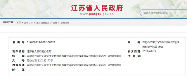 省政府辦公廳印發(fā)關(guān)于支持徐州市建設(shè)國(guó)家可持續(xù)發(fā)展議程創(chuàng)新示范區(qū)若干政策的通知
