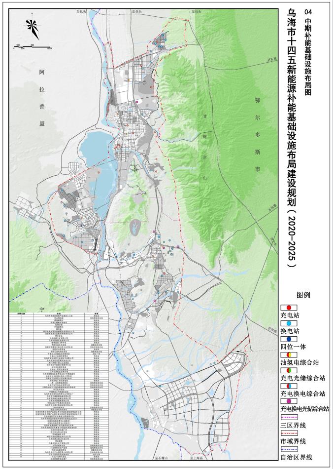 規(guī)劃范圍為全烏海市域范圍,總面積1754平方公里,主要涉及濱河新區(qū)、 海勃灣中心城區(qū)、烏達(dá)中心城區(qū)、海南中心城區(qū)和工業(yè)園區(qū)、物流園區(qū)內(nèi)的充電樁布局、換電站布局、加氫站布局和光伏儲(chǔ)能一體化設(shè)施布局。