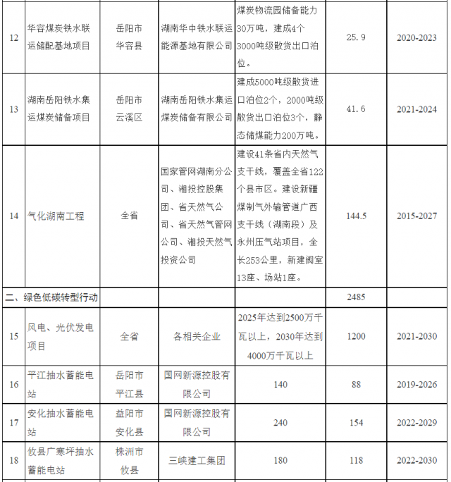 二、支撐電源建設(shè)工程。火電具有調(diào)節(jié)性強(qiáng)、可靠性高等優(yōu)勢,是滿足經(jīng)濟(jì)社會發(fā)展用電需求、實(shí)現(xiàn)雙碳目標(biāo)的重要支撐電源。重點(diǎn)推進(jìn)華電平江電廠,工程位于湖南省岳陽市平江縣余坪鎮(zhèn),本期建設(shè)2×100萬千瓦超超臨界燃煤發(fā)電機(jī)組,同步建設(shè)超低排放環(huán)保設(shè)施,配套建設(shè)鐵路專用線,總投資73.79億元。2020年12月5日主體工程正式開工,確保2022年內(nèi)正式投產(chǎn)。工程建成投產(chǎn)后,將為全省提供200萬千瓦穩(wěn)定供應(yīng)能力,是打贏2022年迎峰度冬電力保供任務(wù)的重點(diǎn)工程。同時,加快國能岳陽電廠建設(shè),爭取2023年底前投產(chǎn)。積極推進(jìn)長安益陽電廠、大唐華銀株洲電廠、陜煤石門電廠3個煤電項目和湘投衡東燃?xì)怆姀S、華電長沙燃?xì)怆姀S、華能湘陰燃?xì)怆姀S3個氣電項目的前期工作,爭取2022年內(nèi)全部開工建設(shè)、“十四五”全部建成投產(chǎn),確保2025年全省支撐性煤電和調(diào)峰性氣電裝機(jī)規(guī)模達(dá)到3300萬千瓦左右。