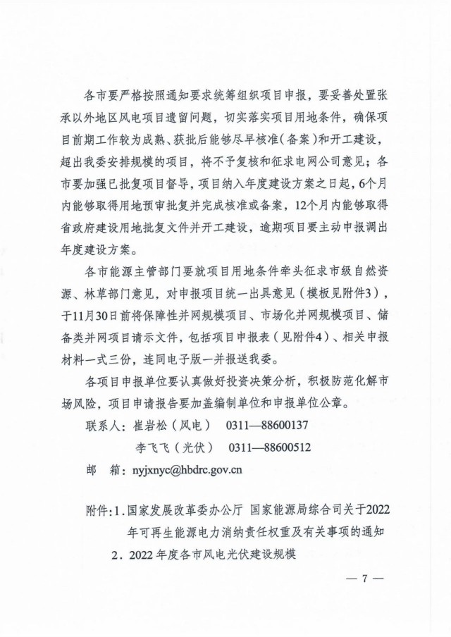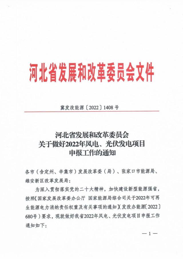 11月4日,河北省發(fā)展和改革委員會下發(fā)《關于做好2022年風電、光伏發(fā)電項目申報工作的通知》,正式啟動2022年風電、光伏發(fā)電項目申報工作。根據(jù)文件,