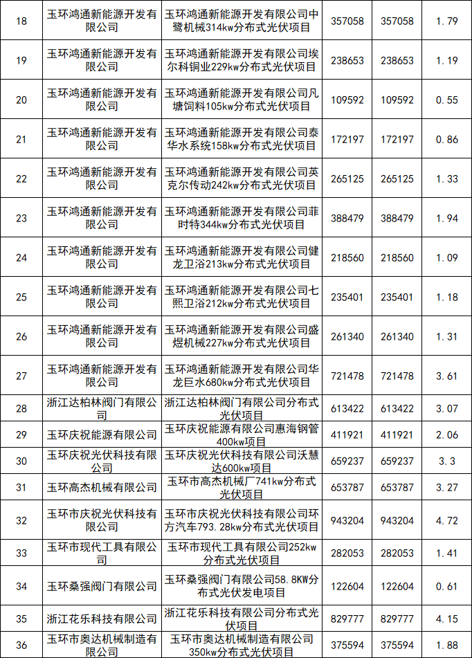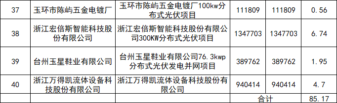 11月9日,玉環(huán)市人民政府關(guān)于撥付2021年節(jié)能技改項(xiàng)目、分布式光伏項(xiàng)目專項(xiàng)資金的公示,其中2021年分布式光伏項(xiàng)目獎(jiǎng)勵(lì)資金達(dá)到85.17萬元。