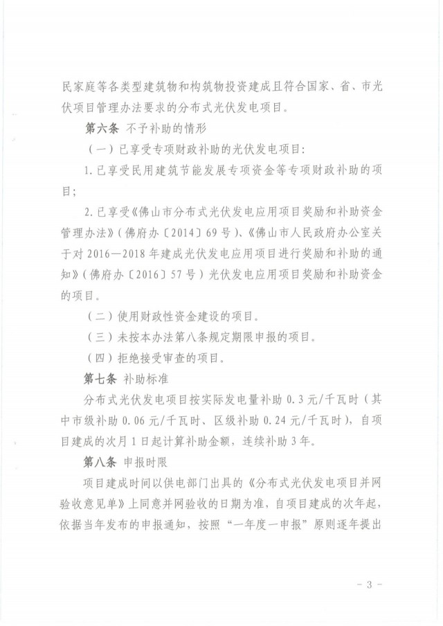 項目自建成并網(wǎng)的次月起連續(xù)補助36個月,其中:2017一2018年建成并網(wǎng)的分布式光伏發(fā)電項目,按實際發(fā)電量補助0.15元/千瓦時;2019-2020年建成并網(wǎng)的分布式光伏發(fā)電項目,按實際發(fā)電量補助0.3元/千瓦時。