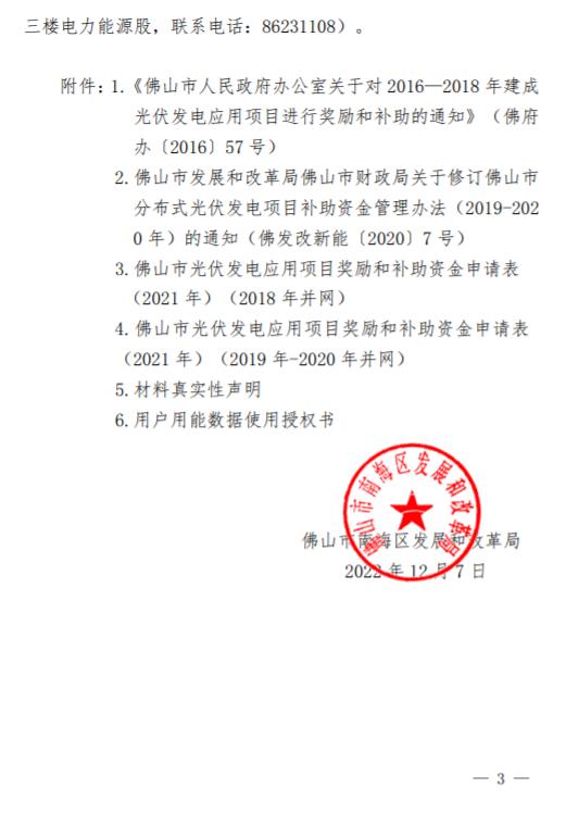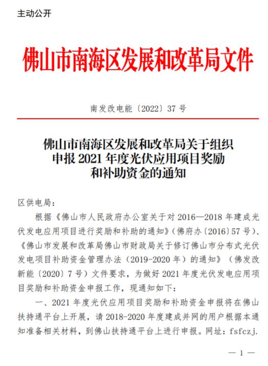 廣東佛山南海區(qū)啟動(dòng)2021年度光伏應(yīng)用項(xiàng)目獎(jiǎng)勵(lì)和補(bǔ)助資金申報(bào)工作