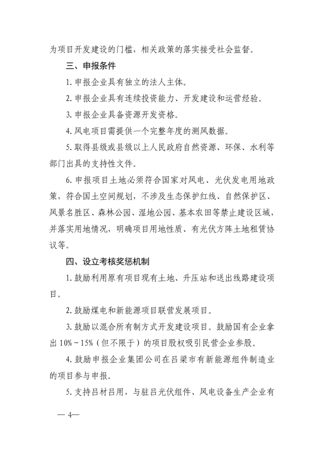 鼓勵(lì)申報(bào)企業(yè)集團(tuán)公司在呂梁市有新能源組件制造業(yè)的項(xiàng)目參與申報(bào)支持呂材呂用,與駐呂光伏組件、風(fēng)電設(shè)備生產(chǎn)企業(yè)有合作的項(xiàng)目。