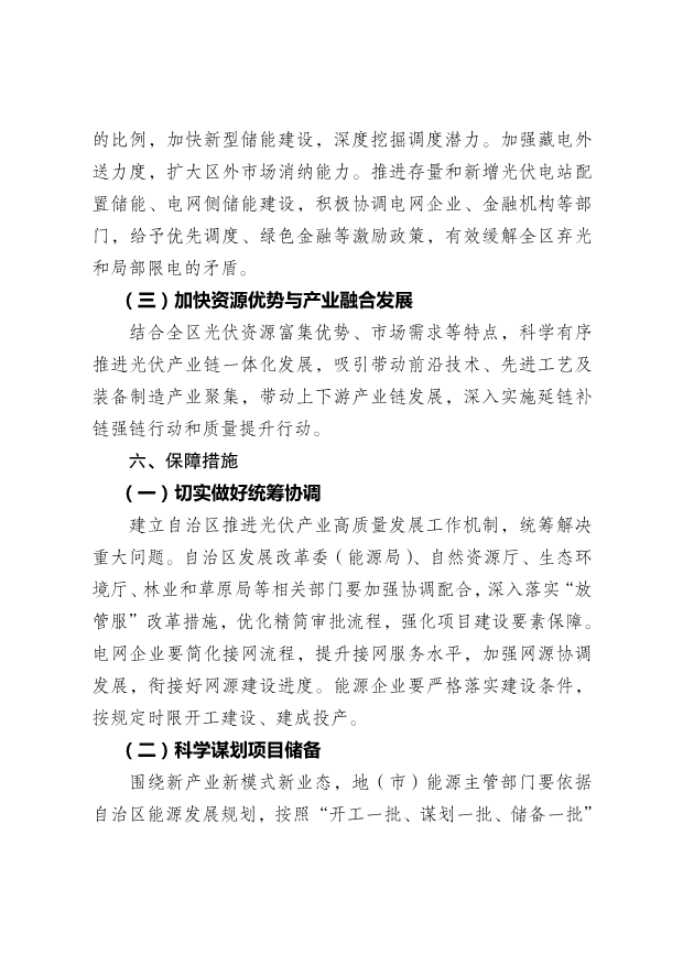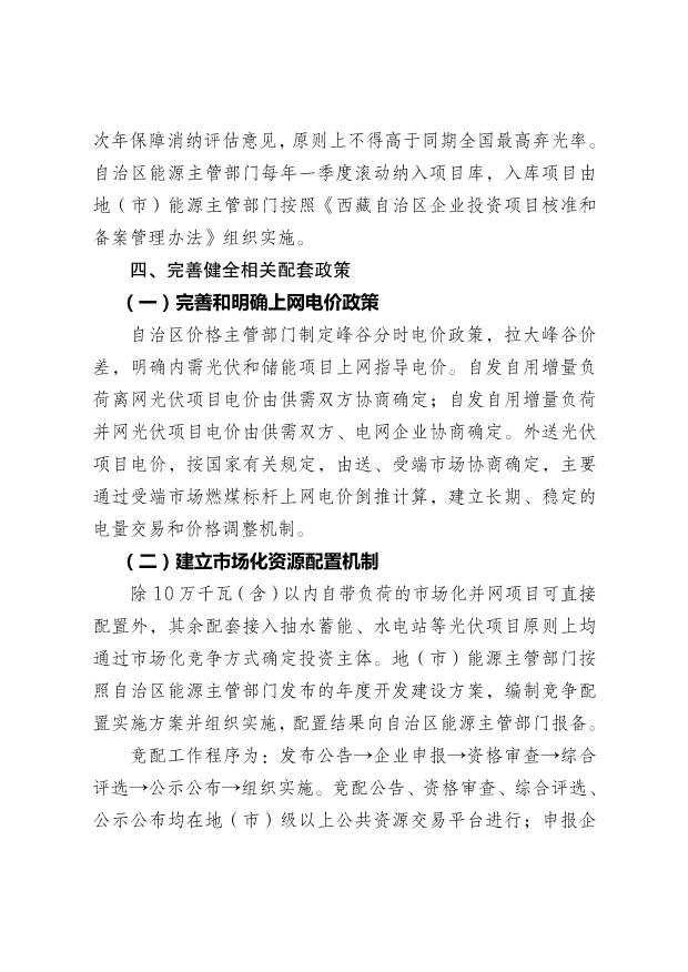 推進(jìn)可再生能源利用示范區(qū)建設(shè),提高電能在終端用能中的比例,加快新型儲(chǔ)能建設(shè),深度挖掘調(diào)度潛力。加強(qiáng)藏電外送力度,擴(kuò)大區(qū)外市場(chǎng)消納能力。推進(jìn)存量和新增光伏電站配置儲(chǔ)能、電網(wǎng)側(cè)儲(chǔ)能建設(shè),積極協(xié)調(diào)電網(wǎng)企業(yè)、金融機(jī)構(gòu)等部門,給予優(yōu)先調(diào)度、綠色金融等激勵(lì)政策,有效緩解全區(qū)棄光和局部限電的矛盾。