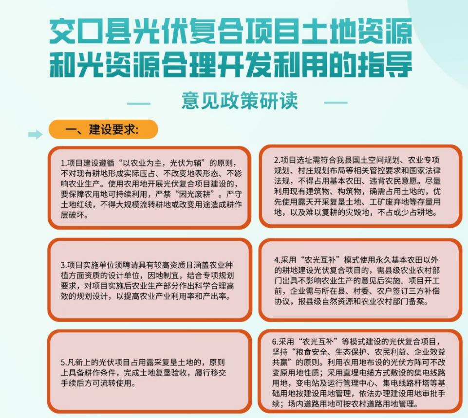 《交口縣光伏復合項目土地資源和光資源合理開發(fā)利用的指導性意見》已經(jīng)縣人民政府同意,現(xiàn)印發(fā)給你們,請認真遵照實施。
