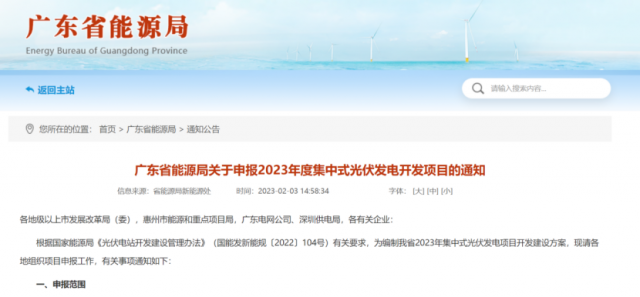 廣東省能源局關(guān)于申報2023年度集中式光伏發(fā)電開發(fā)項(xiàng)目的通知