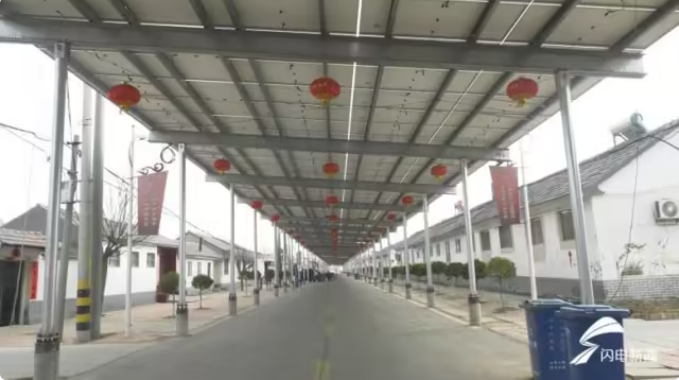 3月21日,在濰坊峽山區(qū)岞山村,寬闊筆直的道路上架起了鋼結構框架,部分架子頂部的光伏板已安裝完成。據介紹,目前該村4條主街的光伏板已基本架設完成,施工人員正在加緊施工,力爭項目早日投用。山東匯邦電力建設工程有限公司總經理韓嘉華表示:“該項目于去年11月份開工。到目前為止已經完成了70%左右,預計4月15日左右全部并網發(fā)電。”