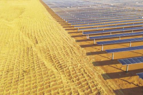 與一般的新能源電站不同,在沙漠投資新能源項(xiàng)目還必須解決荒漠治理的難題。所以這個項(xiàng)目建設(shè)之處,國家能源集團(tuán)龍?jiān)措娏瓦\(yùn)用“林光互補(bǔ)”“農(nóng)光互補(bǔ)”技術(shù),采取“林草結(jié)合”模式,實(shí)現(xiàn)“板上發(fā)電、板間種植、板下修復(fù)”新格局,形成光、林、草相結(jié)合的林沙產(chǎn)業(yè)新模式。