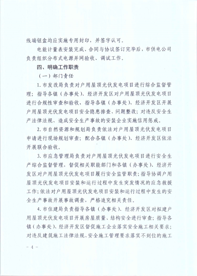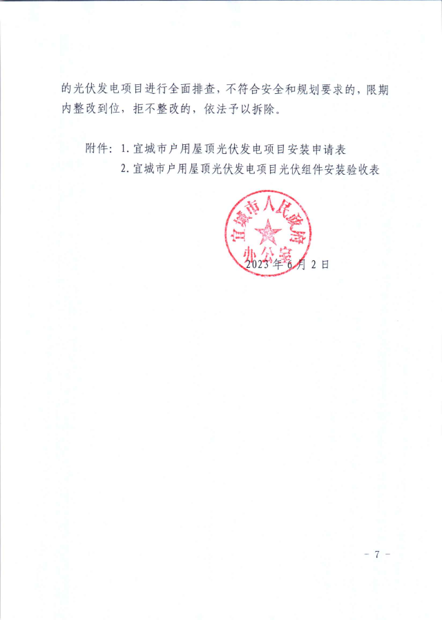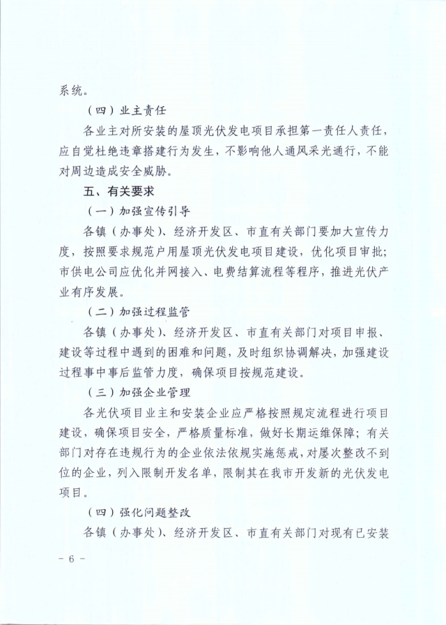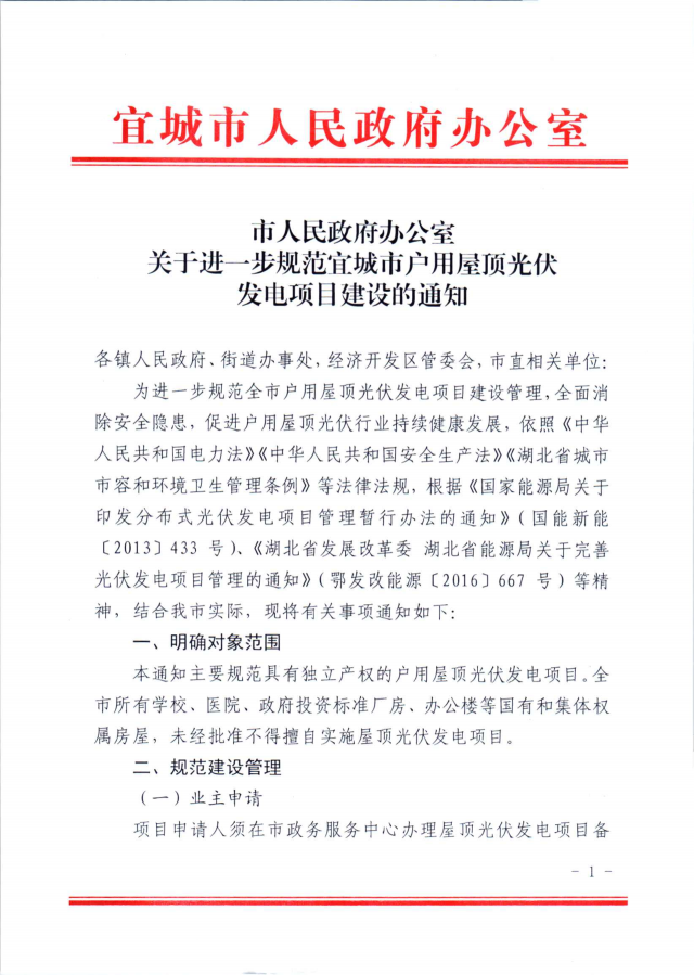 近日,湖北宜城發(fā)布《關(guān)于進(jìn)一步規(guī)范宜城市戶(hù)用屋頂光伏發(fā)電項(xiàng)目建設(shè)的通知》,明確指出全市所有學(xué)校、醫(yī)院、政府投資標(biāo)準(zhǔn)廠(chǎng)房、辦公樓等國(guó)有和集體權(quán)屬房屋,未經(jīng)批準(zhǔn)不得擅自實(shí)施屋頂光伏發(fā)電項(xiàng)目,而戶(hù)用光伏項(xiàng)目并網(wǎng)需要8個(gè)部門(mén)的簽字。