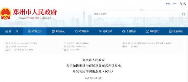 7月20日,鄭州市人民政府發(fā)布《關于加快推進全市屋頂分布式光伏發(fā)電開發(fā)利用的實施意見(試行)》(簡稱《意見》),明確工作目標、重點任務和支持措施等事項。