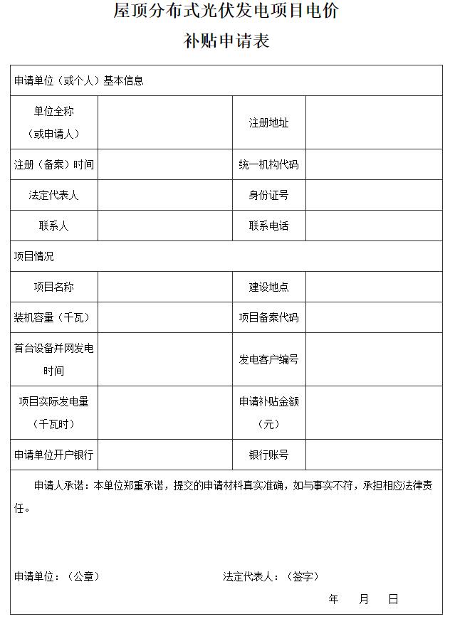 2.屋頂分布式光伏發(fā)電項目電價補貼申請表