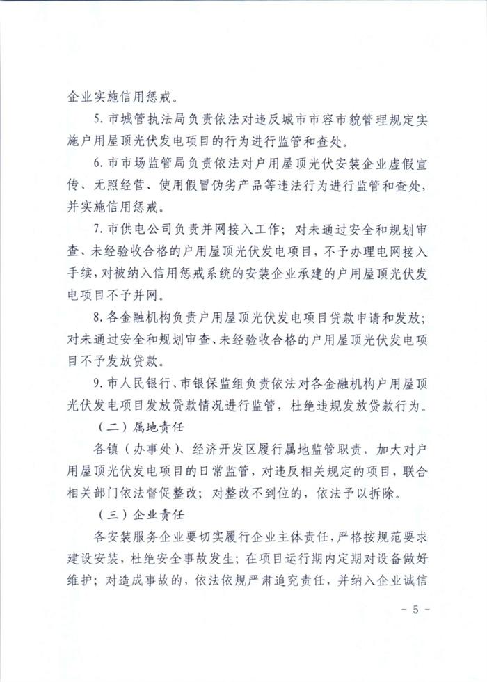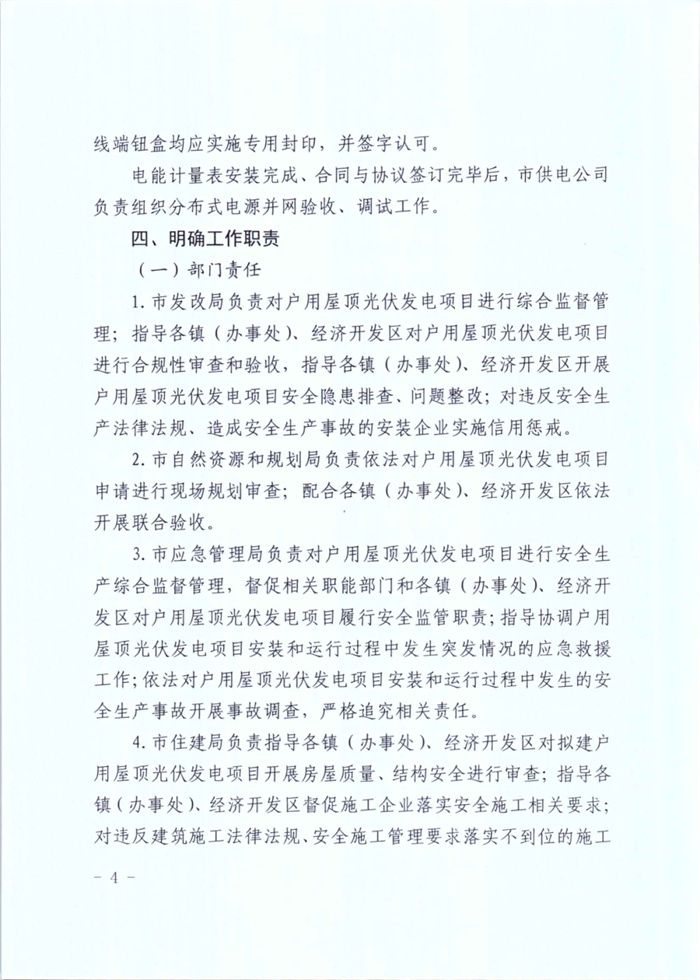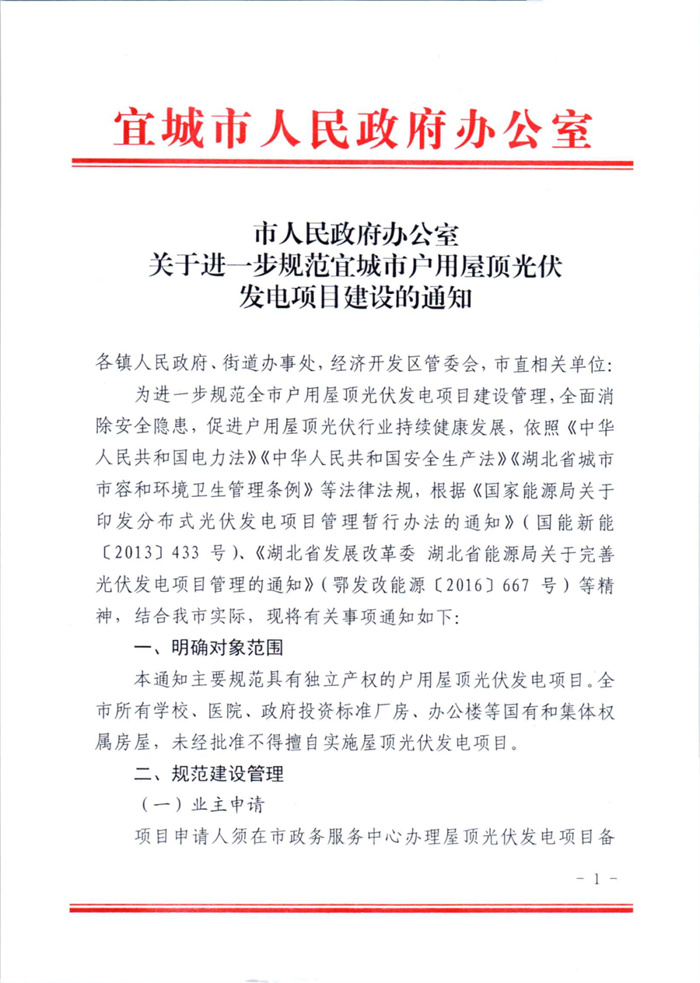 近日,湖北宜城發(fā)布《關(guān)于進(jìn)一步規(guī)范宜城市戶用屋頂光伏發(fā)電項(xiàng)目建設(shè)的通知》,明確指出全市所有學(xué)校、醫(yī)院、政府投資標(biāo)準(zhǔn)廠房、辦公樓等國有和集體權(quán)屬房屋,未經(jīng)批準(zhǔn)不得擅自實(shí)施屋頂光伏發(fā)電項(xiàng)目,而戶用光伏項(xiàng)目并網(wǎng)需要8個(gè)部門的簽字。