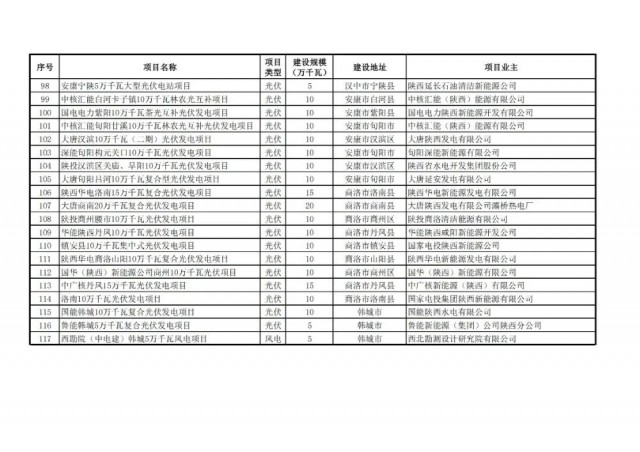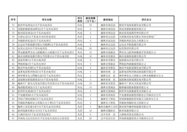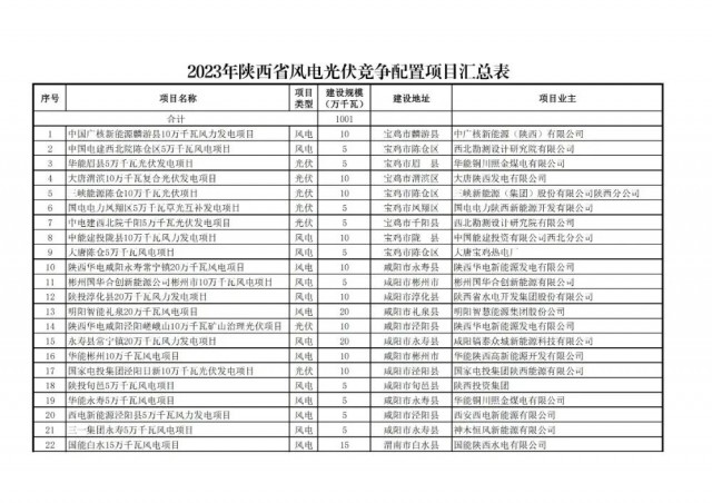 根據(jù)國(guó)家發(fā)展改革委辦公廳、國(guó)家能源局綜合司《關(guān)于2023年可再生能源電力消納責(zé)任權(quán)重及有關(guān)事項(xiàng)的通知》(發(fā)改辦能源〔2023〕569號(hào))和《關(guān)于開(kāi)展陜西省 2023 年風(fēng)電光伏發(fā)電項(xiàng)目開(kāi)發(fā)建設(shè)有關(guān)工作的通知》(陜發(fā)改能新能源〔20 23〕792 號(hào))精神,在各市申報(bào)基礎(chǔ)上,我們組織省級(jí)自然資源、生態(tài)環(huán)境、林業(yè)等職能部門(mén)會(huì)審,省級(jí)電網(wǎng)評(píng)分和專(zhuān)家評(píng)審,綜合確定了117個(gè)項(xiàng)目1001萬(wàn)千瓦納入2023年陜西省風(fēng)電、光伏發(fā)電項(xiàng)目保障性并網(wǎng)規(guī)模(其中風(fēng)電73個(gè)604萬(wàn)千瓦,光伏44個(gè)397萬(wàn)千瓦)。