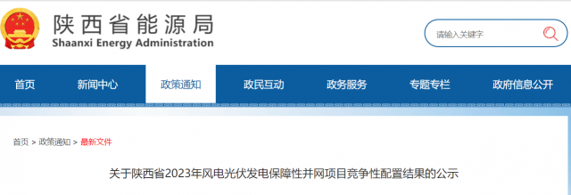 現(xiàn)將2023年陜西省風(fēng)電、光伏發(fā)電保障性并網(wǎng)項(xiàng)目競(jìng)爭(zhēng)性配置結(jié)果進(jìn)行公示。公示時(shí)間為2023年8月25日至2023年8月31日,如有異議,請(qǐng)?jiān)诠酒趦?nèi)以書(shū)面實(shí)名反映。