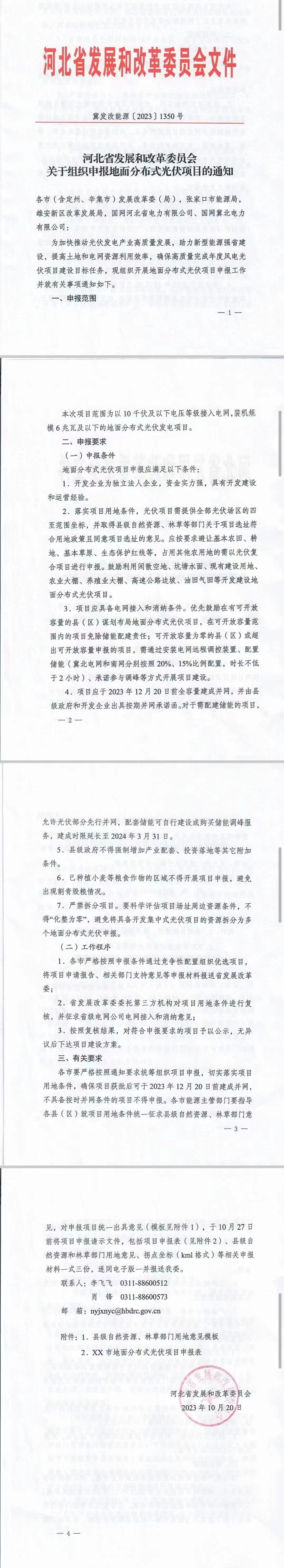 3)并網(wǎng)時間要求:確保項目獲批后可于2023年12月20日前建成并網(wǎng), 不具備按時并網(wǎng)條件的項目不得申報。由縣級政府和開發(fā)企業(yè)出具按期并網(wǎng)承諾函。