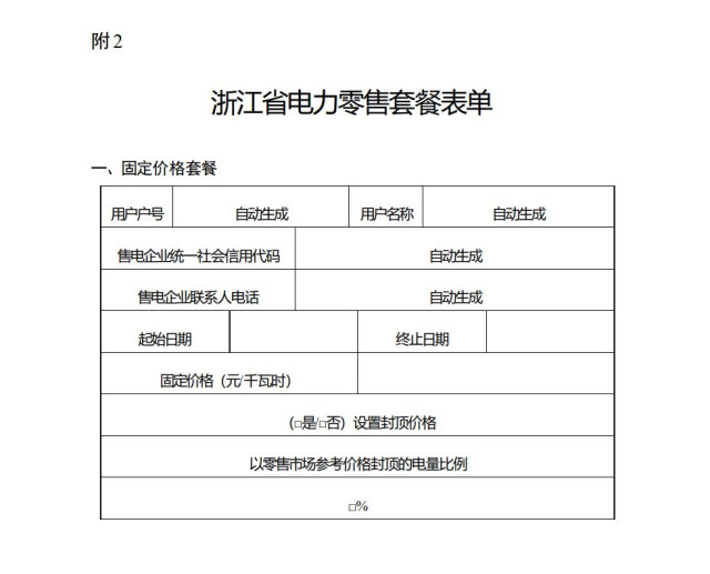 (七)市場(chǎng)初期,售電公司與零售用戶應(yīng)按照《浙江省電力零售套餐模式》規(guī)定的零售套餐種類(lèi)開(kāi)展零售交易,除另有規(guī)定外不得約定套餐外條款。