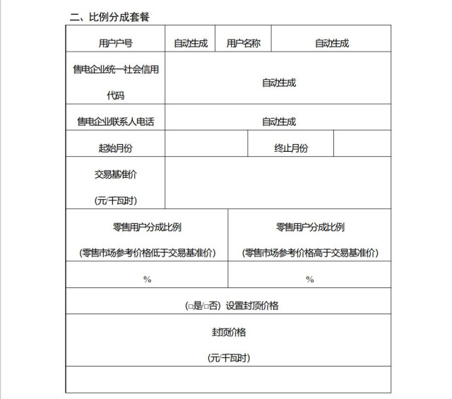 2.比例分成套餐:售電公司與零售用戶約定分成基準(zhǔn)價(jià)和分成比例,參照零售套餐參考價(jià)格進(jìn)行收益分享、風(fēng)險(xiǎn)共擔(dān)的零售套餐;