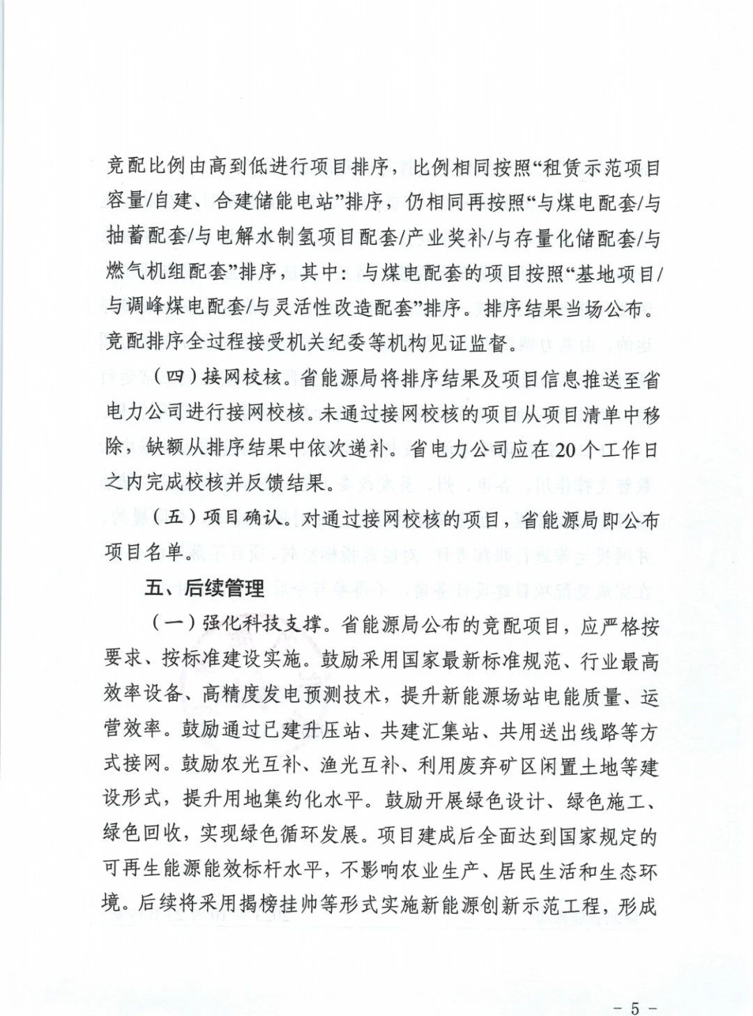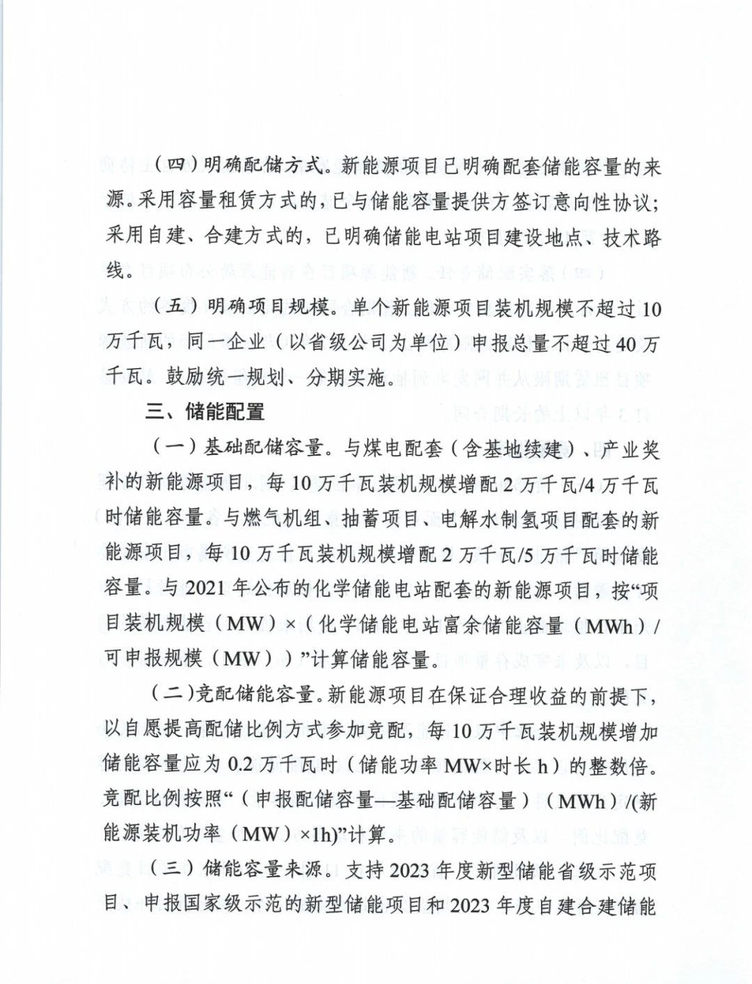 文件明確表示,根據(jù)項目的不同類型,按照20%/2小時(2.5小時)配置儲能容量,作為基礎條件。新能源項目在基礎配儲容量之外自愿提高配儲比例,作為競爭條件,省能源局依據(jù)項目競配比例從高到低安排新建項目。