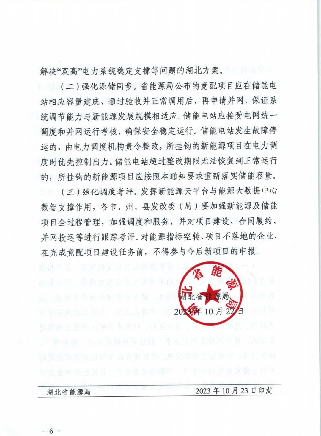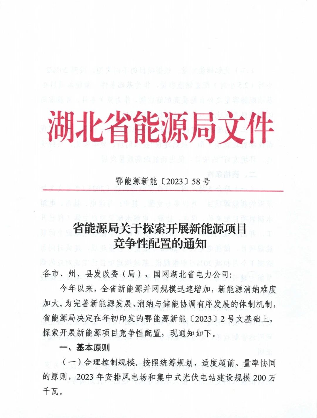 10月23日,湖北省能源局印發(fā)《關于探索開展新能源項目競爭性配置的通知》,擬安排2GW風、光項目指標,并以儲能配置比例作為競爭優(yōu)選條件。