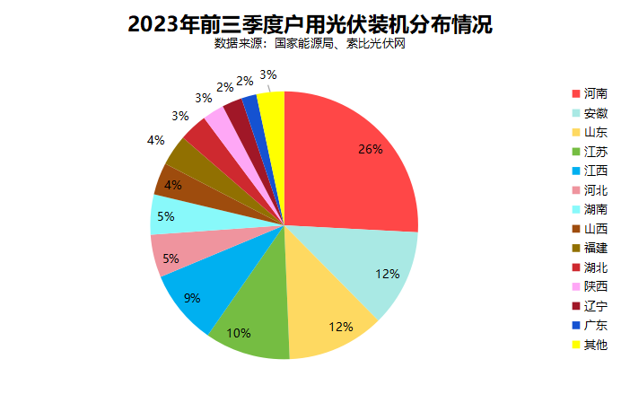 光伏發(fā)電方面,2023年前三季度,光伏新增裝機12894萬千瓦(128.94GW),同比增長145%,其中集中式光伏6180萬千瓦(61.8GW),分布式光伏6714萬千瓦(67.14GW),分布式光伏占比超過52%。分地區(qū)看,河南、山東、江蘇、湖北等11個省(自治區(qū)),前三季度光伏發(fā)電新增裝機超過5GW,其中7省的分布式光伏占比都超過一半。最高的河南省,分布式光伏占比超過98.6%,成為名副其實的“分布式光伏發(fā)展熱土”。
