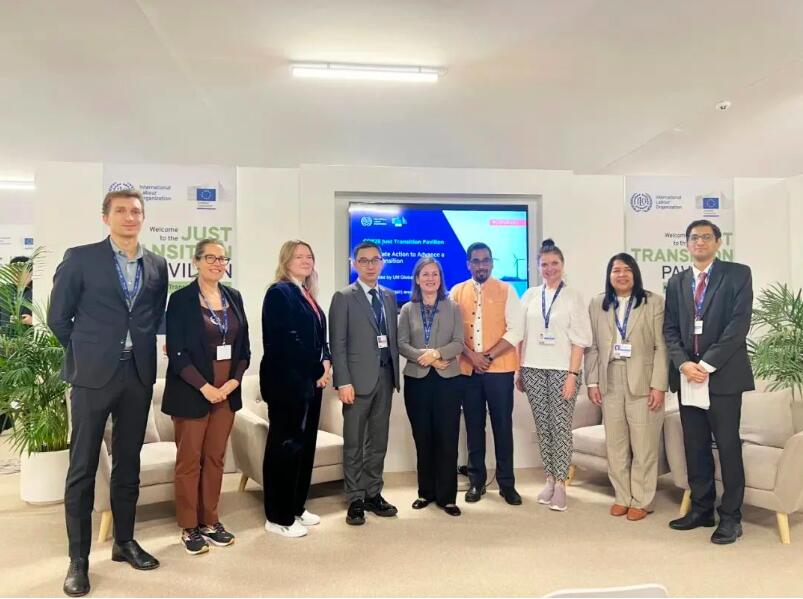 ■ 隆基綠能副總裁佘海峰(中)出席由聯(lián)合國全球契約組織(UNGC)主辦的“推進(jìn)公正轉(zhuǎn)型的企業(yè)行動”邊會。