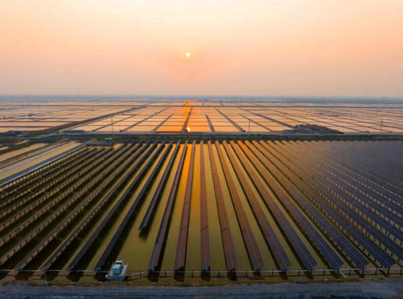 走進濰坊濱海風(fēng)光儲智慧能源示范基地,波光粼粼的鹽池水面上,一排排光伏板、一座座逆變器機組整齊排列,與蔚藍的天空交相輝映,宛若一片盛放在廣袤鹽田上的光伏“藍?!保陉柟獾挠痴障蚂陟谏x,勾勒出一派科技創(chuàng)新與生態(tài)環(huán)境相得益彰的生態(tài)畫卷。