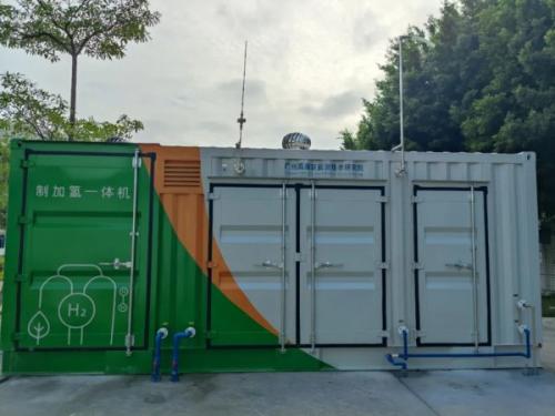 針對(duì)分布式場(chǎng)景用氫需求,為減輕加氫站運(yùn)維成本,滿足燃料電池汽車推廣用氫需求,能源技術(shù)研究院牽頭完成了全國首套PEM電解水制氫加氫一體機(jī),并成功進(jìn)行示范應(yīng)用。示范樣機(jī)的制氫能力為10Nm³/h,產(chǎn)氫壓力為1-4MPa,氫氣壓縮機(jī)排氣壓力為45MPa。該設(shè)備主要由制氫及純化系統(tǒng)、壓縮系統(tǒng)、加注系統(tǒng)、冷卻系統(tǒng)、控制系統(tǒng)、輔助系統(tǒng)等組成,氫氣純度滿足GB/T37244-2018《質(zhì)子交換膜燃料電池汽車用燃料氫氣》。整套裝備結(jié)構(gòu)緊湊、隨制隨加、節(jié)能高效,可以靈活布置,滿足不同場(chǎng)景需求。