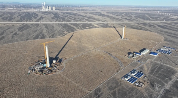 在距離格爾木700多公里的甘肅省瓜州縣,三峽集團(tuán)正在建設(shè)全球首個(gè)“雙塔一機(jī)”風(fēng)光熱儲一體化項(xiàng)目——三峽能源瓜州70萬千瓦“光熱儲能+”項(xiàng)目,其中的子項(xiàng)目——10萬千瓦光熱項(xiàng)目(以下簡稱“瓜州項(xiàng)目”)是全球首個(gè)“雙塔一機(jī)”光熱電站。
