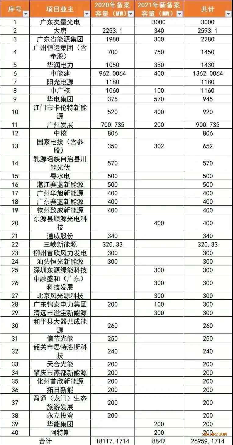 從上表可以看出,廣東能源集團、中國能建廣東院、廣州發(fā)展等本地企業(yè)參與度也非常高,同時一些地方企業(yè)拿到的規(guī)模也非??捎^——廣東矣量光電股份有限公司更是一次性備案總建設(shè)規(guī)模3GW的10個光伏項目。