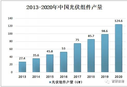 隨著中國光伏新增裝機(jī)容量不斷增加,中國光伏組件產(chǎn)量也不斷增加,2020年中國光伏組件產(chǎn)量達(dá)124.6GW,較2019年的98.6GW同比增長26.4%。