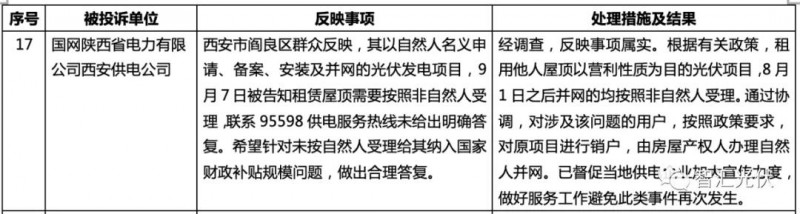 通報(bào)顯示:西安市閻良區(qū)群眾反映,其以自然人名義申請、備案、安裝及并網(wǎng)的光伏發(fā)電項(xiàng)目,9月7日被告知租賃屋頂需要按照非自然人受理,聯(lián)系95598供電服務(wù)熱線未給出明確答復(fù)。希望針對未按自然人受理給其納入國家財(cái)政補(bǔ)貼規(guī)模問題,做出合理答復(fù)。