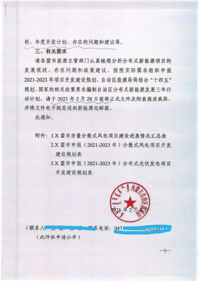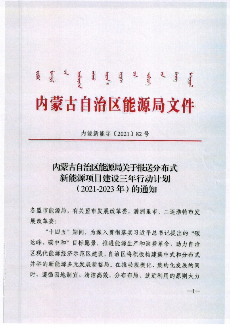 近日,內(nèi)蒙古自治區(qū)能源局發(fā)布關(guān)于報送《分布式新能源項目建設(shè)三年行動計劃(2021-2023年)》的通知。