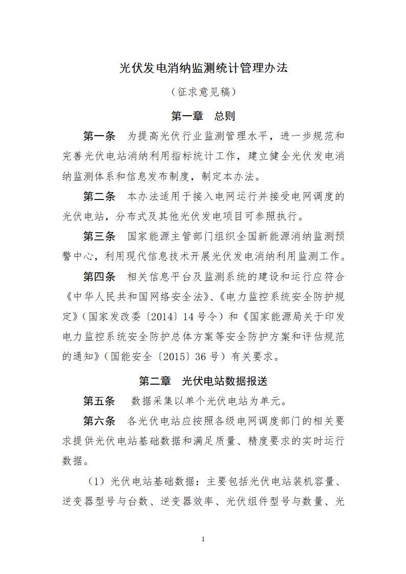 附件:光伏發(fā)電消納監(jiān)測統(tǒng)計(jì)管理辦法(征求意見稿)