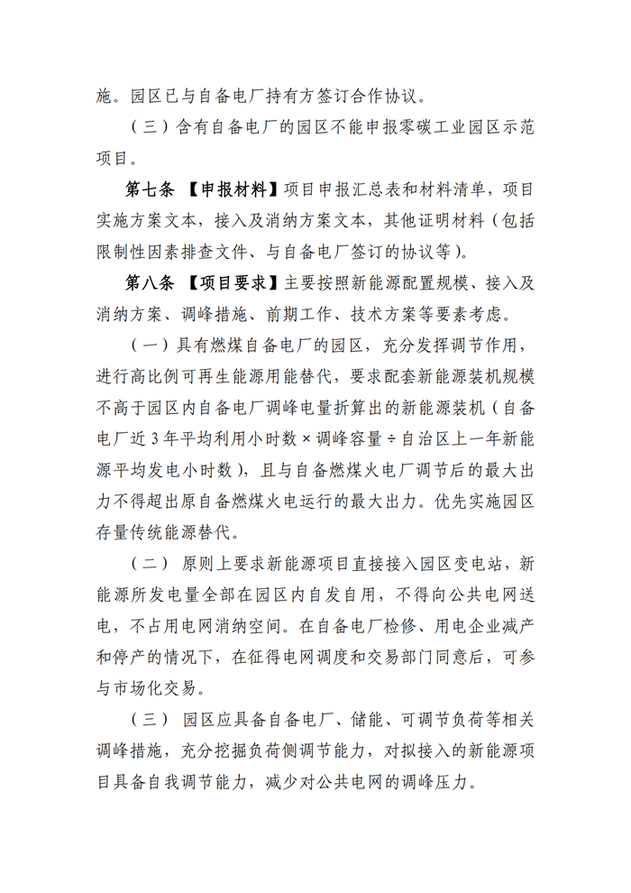 鼓勵具備新增負(fù)荷的園區(qū)開展零碳工業(yè)園示范項目,以零碳用能為發(fā)展目標(biāo),率 先開展全清潔能源供電,提升園區(qū)整體能效。園區(qū)新增負(fù)荷供電原則上 100%由新能源電量構(gòu)成,對于配套新能源所發(fā)電量不能滿足園區(qū)供電時,所購買電量需為可再生能源綠電, 園區(qū)應(yīng)通過配置儲能等措施,保證與園區(qū)負(fù)荷的匹配響應(yīng)和高比例自平衡。