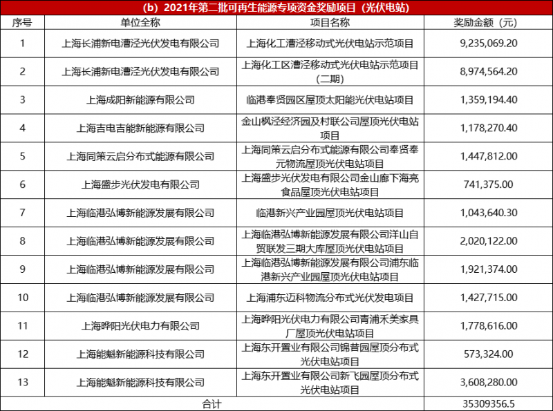 上海市2021年度第二批可再生能源專項資金撥付計劃(草案)公示
