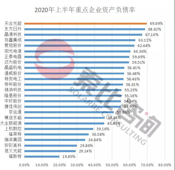 從資產(chǎn)負債率來看,索比咨詢統(tǒng)計的98家光伏企業(yè)總負債9103.98億元,平均負債率為49.8%,其中電站EPC企業(yè)的負債率最高,平均達到61.94%,*ST科林和*ST天龍面臨退市風(fēng)險;上游企業(yè)負債率為56.15%,輔材企業(yè)負債率最低,平均負債率為34.49%。