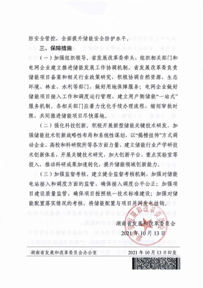 10月13日,湖南省發(fā)改委下發(fā)《關(guān)于加快推動(dòng)湖南省電化學(xué)儲(chǔ)能發(fā)展的實(shí)施意見(jiàn)》,文件明確以發(fā)展電網(wǎng)側(cè)獨(dú)立儲(chǔ)能為重點(diǎn),集中規(guī)劃建設(shè)一批電網(wǎng)側(cè)儲(chǔ)能電站,力爭(zhēng)到2023年建成電化學(xué)儲(chǔ)能電站150萬(wàn)千瓦/300萬(wàn)千瓦時(shí)以上。