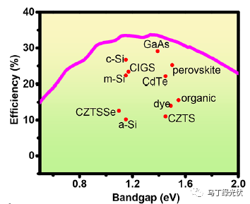 4.像鈣鈦礦、碲化鎘、銅銦鎵硒這類的材料,能帶寬度大于晶體硅電池,能夠用于制備晶體硅疊層電池,拓寬光譜的利用率,進(jìn)一步提高太陽(yáng)能電池的理論效率。