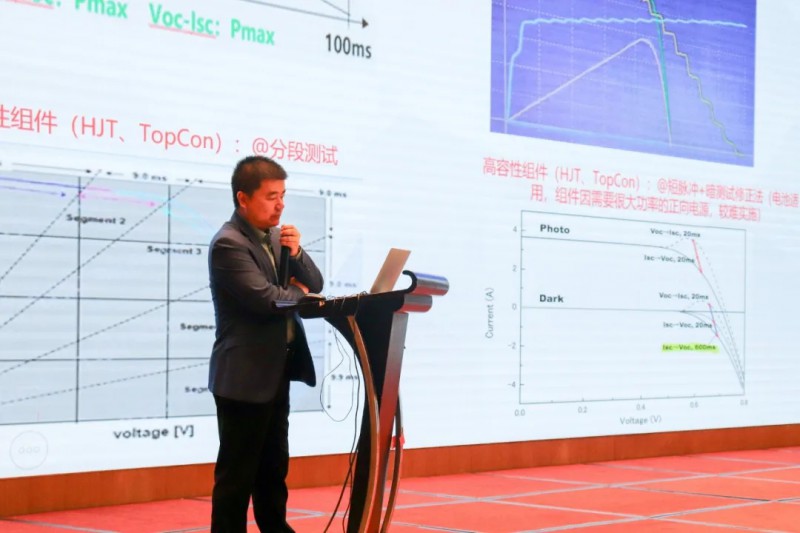 北京德雷射科光電有限公司總經(jīng)理林慧軍,作了《高容性太陽電池組件I-V測試最新研究》的報(bào)告,分析了當(dāng)前高容性太陽電池組件I-V測試的現(xiàn)狀,然后針對光伏產(chǎn)品“容性高,測不準(zhǔn)”的行業(yè)痛點(diǎn),展示了該公司所做的技術(shù)工作及取得的重大成果。