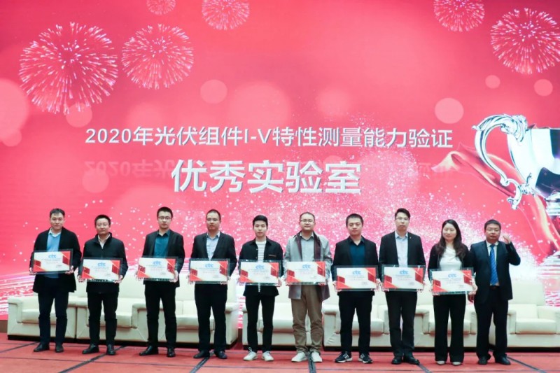 此次會議對常熟阿特斯陽光電力科技有限公司光伏測試中心、常州亞瑪頓股份有限公司中心實(shí)驗(yàn)室、滁州隆基樂葉光伏科技有限公司檢測中心、東方日升新能源股份有限公司實(shí)驗(yàn)室、海寧正泰新能源科技有限公司光伏檢測中心、合肥晶澳太陽能科技有限公司實(shí)驗(yàn)室、環(huán)晟光伏(江蘇)有限公司檢測實(shí)驗(yàn)室、江蘇隆基樂葉光伏科技有限公司檢測中心、江蘇賽拉弗光伏系統(tǒng)有限公司產(chǎn)品檢測中心、晉能清潔能源科技股份公司實(shí)驗(yàn)中心、晶科能源股份有限公司檢測中心(江西上饒)、晶科能源股份有限公司檢測中心(浙江海寧)、上海晶澳太陽能科技有限公司檢測中心、泰州隆基樂葉光伏科技有限公司檢測中心、泰州中來光電科技有限公司檢測中心、通威太陽能(合肥)有限公司光伏實(shí)驗(yàn)中心、無錫尚德太陽能電力有限公司光伏產(chǎn)品檢驗(yàn)實(shí)驗(yàn)室、張家港協(xié)鑫集成科技有限公司檢測中心、浙江隆基樂葉光伏科技有限公司檢測中心、浙江正泰新能源開發(fā)有限公司光伏檢測中心、中建材浚鑫科技有限公司光伏產(chǎn)品檢測中心、中節(jié)能太陽能科技(鎮(zhèn)江)有限公司,共計(jì)22家實(shí)驗(yàn)室,頒發(fā)了“2020年光伏組件I-V特性測量能力驗(yàn)證 優(yōu)秀實(shí)驗(yàn)室”獎,對東方日升新能源股份有限公司實(shí)驗(yàn)室、海寧正泰新能源科技有限公司光伏檢測中心、合肥晶澳太陽能科技有限公司實(shí)驗(yàn)室、上海晶澳太陽能科技有限公司檢測中心,共計(jì)4家實(shí)驗(yàn)室,頒發(fā)了“CTC國檢集團(tuán)優(yōu)秀合作實(shí)驗(yàn)室”獎。