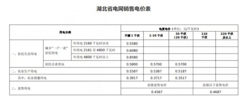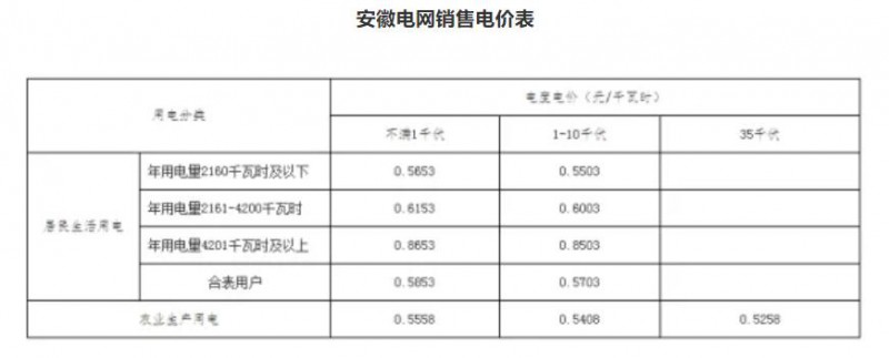注:1.上表所列價(jià)格,均含國(guó)家重大水利工程建設(shè)基金0.1125分錢。2.上表所列價(jià)格,除農(nóng)業(yè)生產(chǎn)用電外,均含大中型水庫(kù)移民后期扶持資金0.23分錢、可再生能源電價(jià)附加0.1分錢。3.對(duì)城鄉(xiāng)“低保戶”和農(nóng)村牧區(qū)“五保戶”家庭每戶每月設(shè)置15度免費(fèi)用電基數(shù),分別按照表中居民生活用電第一檔電量電價(jià)標(biāo)準(zhǔn)收取及返還。4.對(duì)執(zhí)行居民生活用電、農(nóng)業(yè)生產(chǎn)用電的電壓等級(jí)在35-110千伏及以上的用戶,按表中1-10千伏所對(duì)應(yīng)的電度電價(jià)標(biāo)準(zhǔn)執(zhí)行。