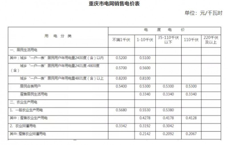 注:1. 上表所列價(jià)格,均含國(guó)家重大水利工程建設(shè)基金0.196875分錢;除農(nóng)業(yè)排灌用電外(農(nóng)業(yè)排灌用電基金征收按原政策口徑執(zhí)行),均含農(nóng)網(wǎng)還貸資金2分錢;除農(nóng)業(yè)生產(chǎn)用電外,均含大中型水庫(kù)移民后期扶持基金0.6225分錢、地方水庫(kù)移民后期扶持基金0.05分錢、可再生能源電價(jià)附加0.1分錢。2.已摘帽國(guó)家級(jí)貧困縣農(nóng)業(yè)排灌用電按表列分類電價(jià)降低0.196875分錢(國(guó)家重大水利工程建設(shè)基金)執(zhí)行。3.國(guó)網(wǎng)重慶市電力公司對(duì)其控股供電公司躉售電量不適用此表所列躉售價(jià)格。