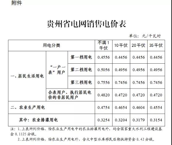 注:上表所列價(jià)格,居民生活用電和農(nóng)業(yè)生產(chǎn)用電價(jià)格含國(guó)家重大水利工程建設(shè)基金0.1125分錢,居民生活用電價(jià)格含大中型水庫(kù)移民后期扶持基金0.12分錢。